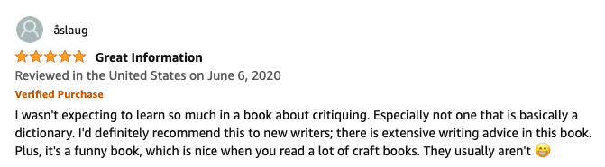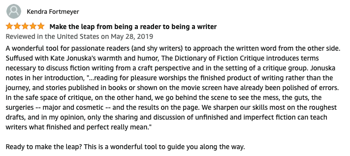 “Expert, compact and suffused with warmth and humor, The Dictionary of Fiction Critique is the perfect introduction to discussing fiction like a writer.”